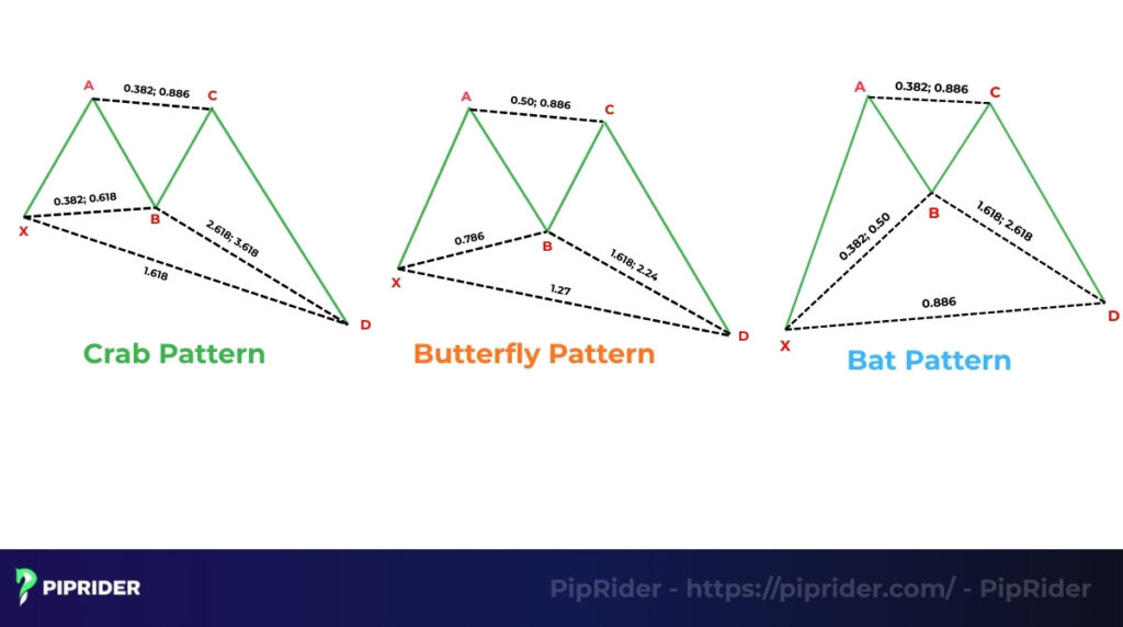 | Pattern Type | Extension (D is beyond X) | Extension (D is beyond X) | Retracement (D is within XA) |
