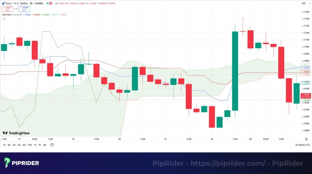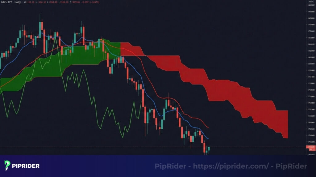 - Capturing Sustained Trends: Forex pairs often trend for days or weeks due to macroeconomic divergence. Ichimoku is explicitly built to filter out short-term noise and keep traders positioned in these extended moves.