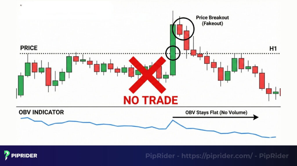- However, if the price breaks out while OBV remains stagnant or declines, it serves as a major warning sign of a potential fakeout.