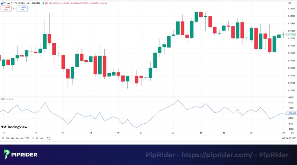 - Crucial for Forex: Since the Spot FX market is decentralized, OBV relies on “tick volume” (a proxy for activity) rather than actual traded volume. While highly correlated, be aware that signals can vary slightly between brokers.